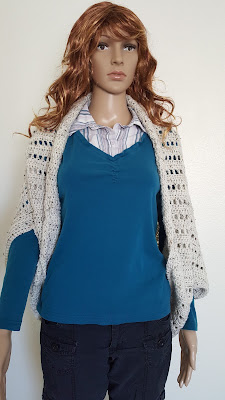 You can make this shrug bigger or smaller by working less or more amounts of the starting chain and rows. I used 4 balls of Hobby Lobby I Love This Yarn in Tweed and a J/6 mm crochet hook. I am planning on making more using Red Heart With Love yarn and Red Heart With Love Metallic yarn – I made some scarves and slippers using that yarn and I love how it comes out!